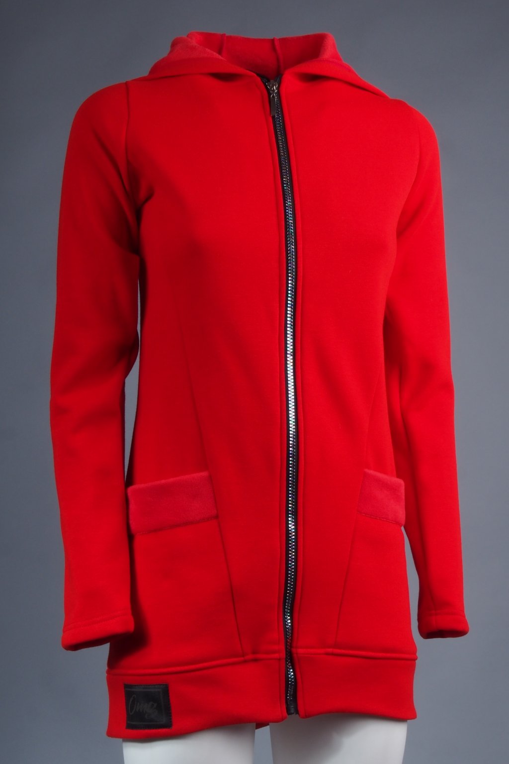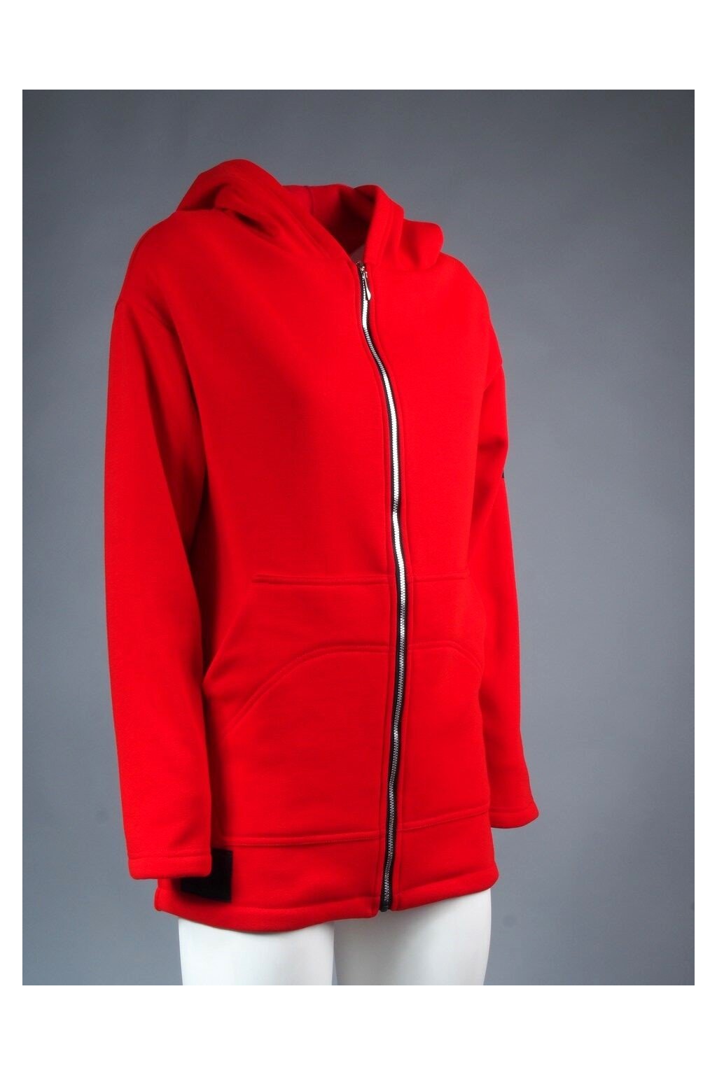 Dlhá pohodlná dámska mikina v červenej farbe. Mikina je vo vnútri počesaná, takže príjemne zahreje. Mikina má skladanú kapucňu a funkčné vrecká.